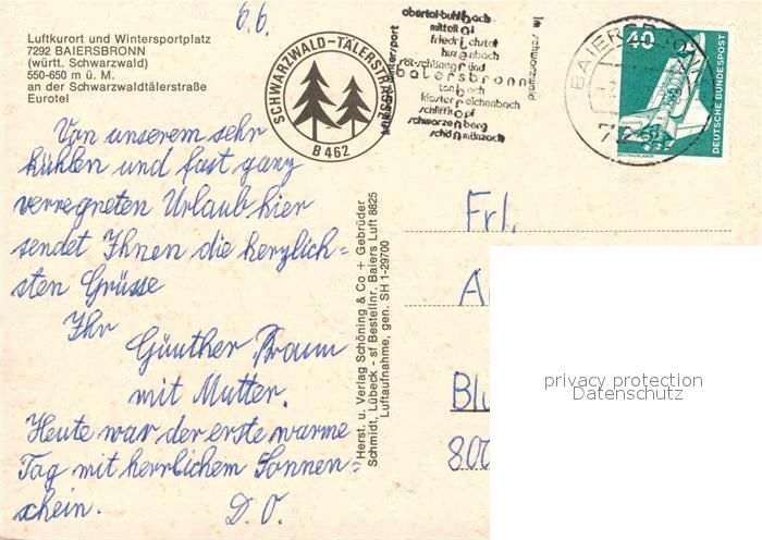 72890273 alte Postkarte Baiersbronn Schwarzwald Fliegeraufnahme Eurotel postalisch gelaufen Erhaltung siehe scans [AndreD76] KatCode: 11110008237004