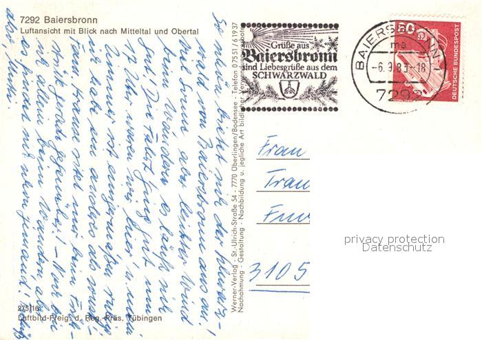 73119712 alte Postkarte Baiersbronn Schwarzwald Fliegeraufnahme mit Mitteltal und Obertal postalisch gelaufen Erhaltung siehe scans [LiesaD40] KatCode: 11110008237004