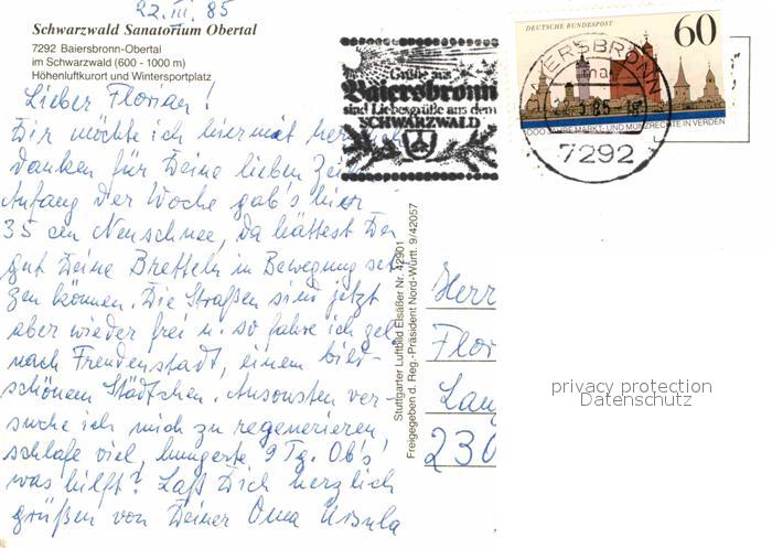 72723958 alte Postkarte Baiersbronn Schwarzwald Fliegeraufnahme Obertal Schwarzwald-Sanatorium postalisch gelaufen Erhaltung siehe scans [LiesaD40] KatCode: 11110008237004