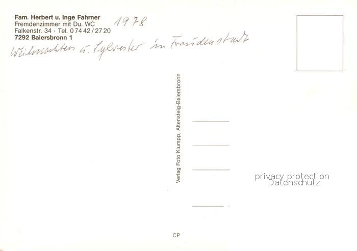 73175114 Baiersbronn Schwarzwald Gaestehaus Pension Fahrner postalisch nicht gelaufen Erhaltung siehe scans [FriedD77] KatCode: 11110008237004