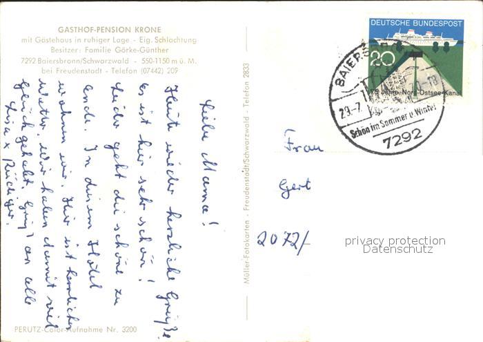 72016603 alte Postkarte Baiersbronn Schwarzwald Gasthof Pension Krone postalisch gelaufen Erhaltung siehe scans KatCode: 11110008237004