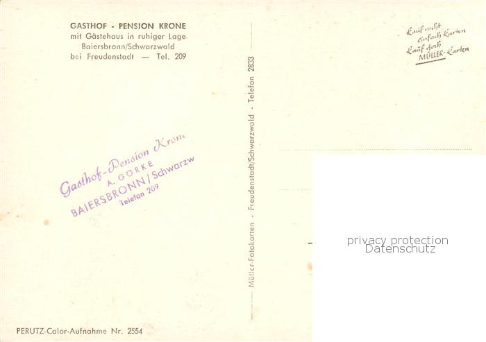 73866456 Baiersbronn Schwarzwald Gasthof Pension Krone postalisch nicht gelaufen Erhaltung siehe scans [WerneD78] KatCode: 11110008237004
