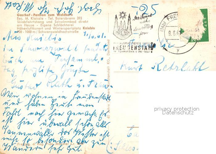 73099393 alte Postkarte Baiersbronn Schwarzwald Gasthof Pension zum Waldhorn postalisch gelaufen Erhaltung siehe scans [WerneD78] KatCode: 11110008237004