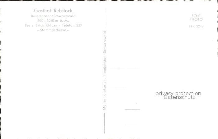 72058226 Baiersbronn Schwarzwald Gasthof Rebstock Stammtischecke postalisch nicht gelaufen Erhaltung siehe scans KatCode: 11110008237004
