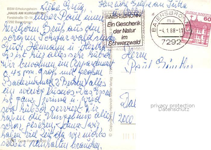 73295465 alte Postkarte Baiersbronn Schwarzwald Haus am Kurgarten Schwimmbad postalisch gelaufen Erhaltung siehe scans [KathaD81] KatCode: 11110008237004
