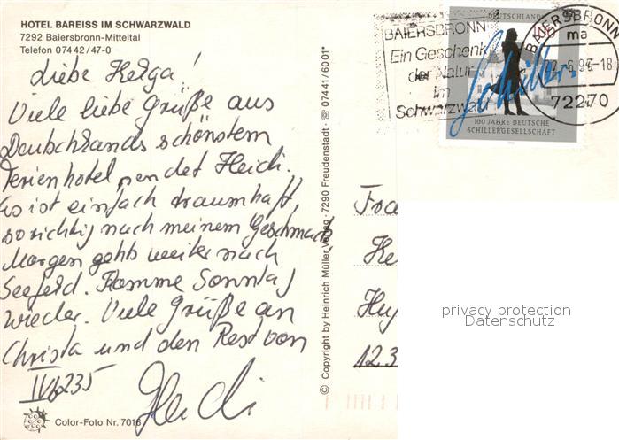 73707563 alte Postkarte Baiersbronn Schwarzwald Hotel Bareiss Gastraum postalisch gelaufen Erhaltung siehe scans [WerneD78] KatCode: 11110008237004