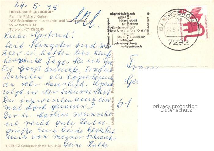 73844665 alte Postkarte Baiersbronn Schwarzwald Hotel Cafe Berghof Gastraeume postalisch gelaufen Erhaltung siehe scans [FriedD77] KatCode: 11110008237004