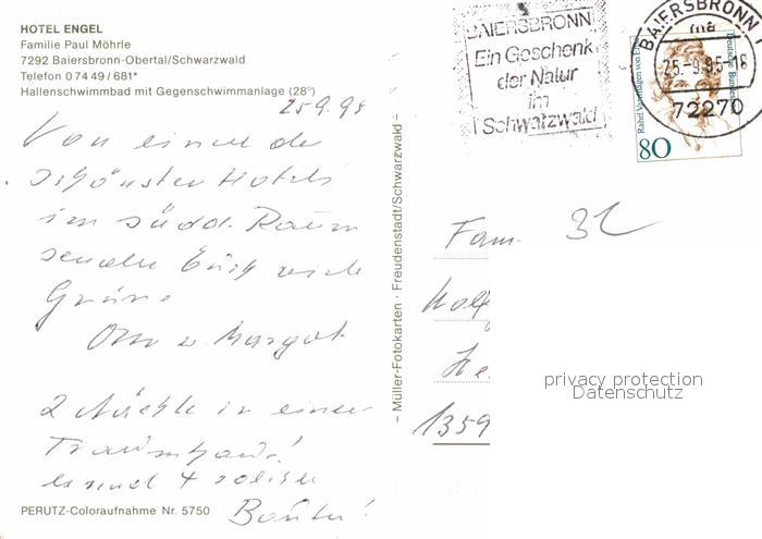 72767982 alte Postkarte Baiersbronn Schwarzwald Hotel Engel postalisch gelaufen Erhaltung siehe scans [WerneD78] KatCode: 11110008237004