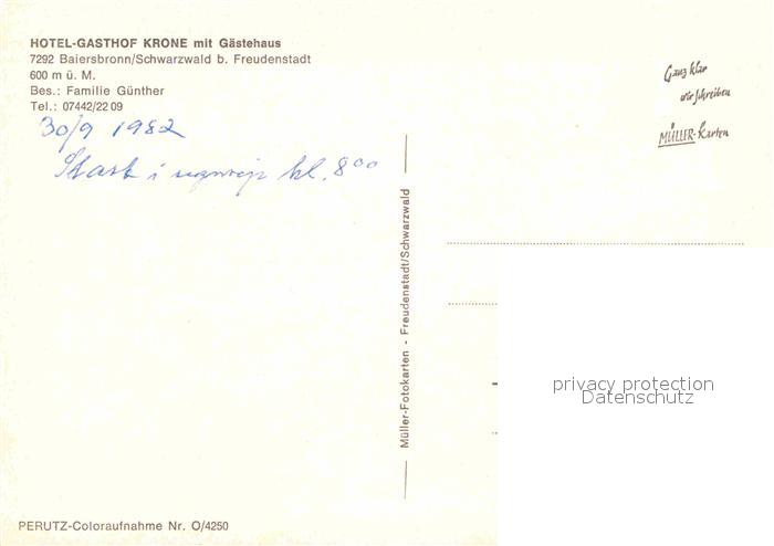 72826900 Baiersbronn Schwarzwald Hotel Gasthof Krone Gaestehaus postalisch nicht gelaufen Erhaltung siehe scans [NatalD47] KatCode: 11110008237004