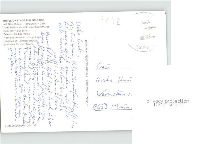 71850810 alte Postkarte Baiersbronn Schwarzwald Hotel Gasthof zum Schloss Fliegeraufnahme postalisch gelaufen Erhaltung siehe scans KatCode: 11110008237004