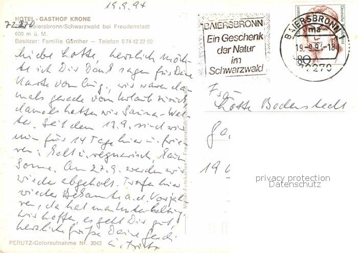72673035 alte Postkarte Baiersbronn Schwarzwald Hotel Krone postalisch gelaufen Erhaltung siehe scans [AndreD76] KatCode: 11110008237004