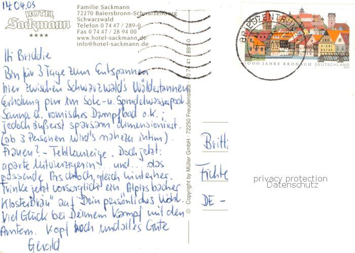 73758487 alte Postkarte Baiersbronn Schwarzwald Hotel Sackmann Teilansichten m. Hallenbad postalisch gelaufen Erhaltung siehe scans [LiesaD40] KatCode: 11110008237004