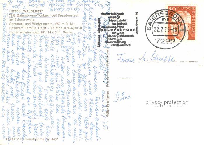 72878404 alte Postkarte Baiersbronn Schwarzwald Hotel Waldeslust postalisch gelaufen Erhaltung siehe scans [AndreD76] KatCode: 11110008237004