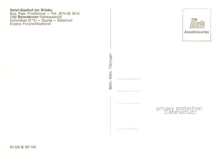 73228683 Baiersbronn Schwarzwald Hotel zur Bruecke postalisch nicht gelaufen Erhaltung siehe scans [NatalD47] KatCode: 11110008237004