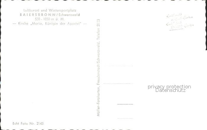 72314098 Baiersbronn Schwarzwald Kirche Maria Koenigin der Apostel postalisch nicht gelaufen Erhaltung siehe scans KatCode: 11110008237004