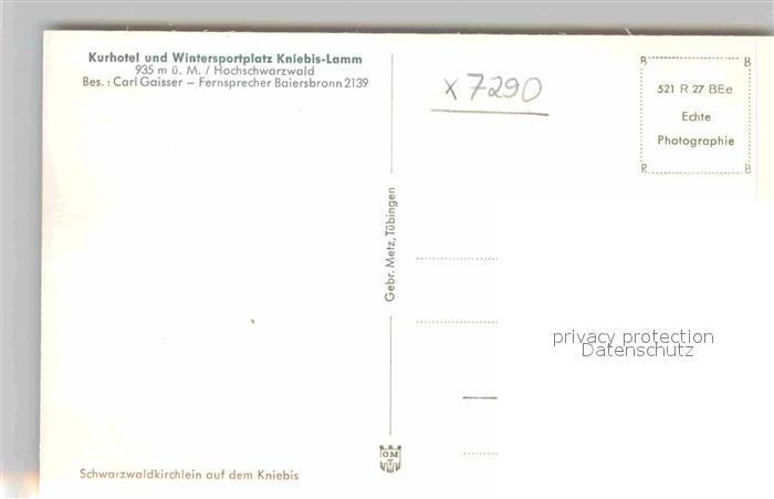 42676373 Baiersbronn Schwarzwald Kurhotel Kniebis Lamm Schwarzkirchlein postalisch nicht gelaufen Erhaltung siehe scans [KathaD79] KatCode: 11110008237004