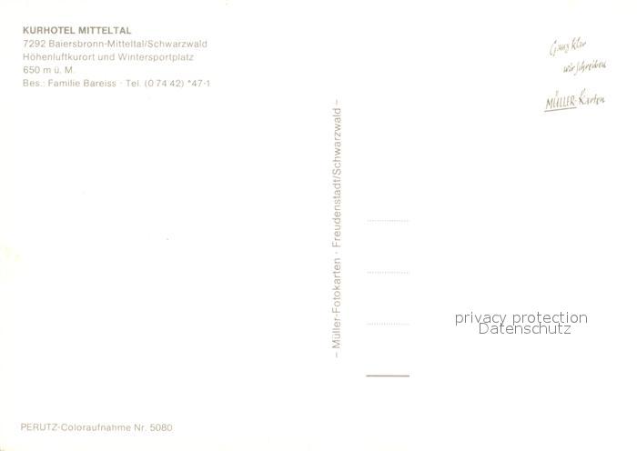 73121893 Baiersbronn Schwarzwald Kurhotel Mitteltal postalisch nicht gelaufen Erhaltung siehe scans [LiesaD40] KatCode: 11110008237004