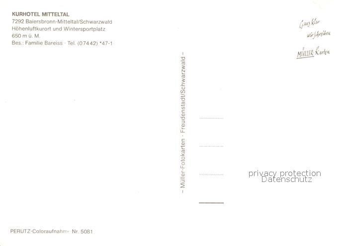 73022575 Baiersbronn Schwarzwald Kurhotel Mitteltal postalisch nicht gelaufen Erhaltung siehe scans [WerneD78] KatCode: 11110008237004