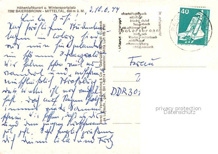 72647517 alte Postkarte Baiersbronn Schwarzwald Mitteltal Fliegeraufnahme postalisch gelaufen Erhaltung siehe scans [WerneD78] KatCode: 11110008237004