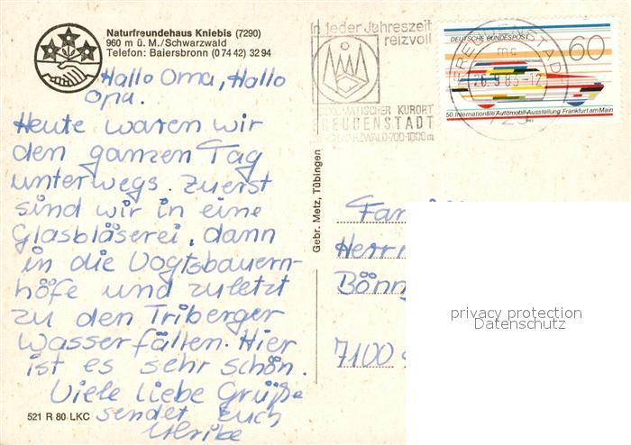 73108147 alte Postkarte Baiersbronn Schwarzwald Naturfreundehaus Kniebis postalisch gelaufen Erhaltung siehe scans [NatalD47] KatCode: 11110008237004