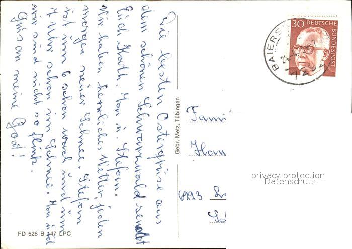 72552726 alte Postkarte Baiersbronn Schwarzwald Obertal Tonbach Mitteltal Ruhestein Schliffkopf Ilgenbach Zuflucht postalisch gelaufen Erhaltung siehe scans [WerneD78] KatCode: 11110008237004