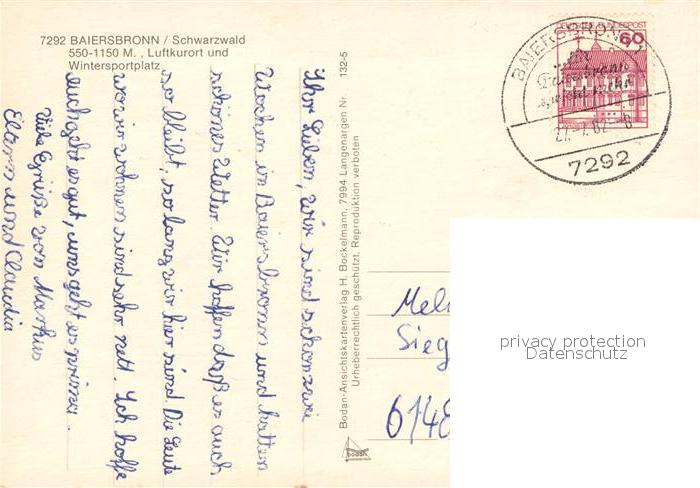 73270508 alte Postkarte Baiersbronn Schwarzwald Panorama postalisch gelaufen Erhaltung siehe scans [WerneD78] KatCode: 11110008237004