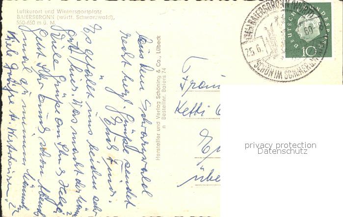 72290209 alte Postkarte Baiersbronn Schwarzwald Panorama Luftkurort Wintersportplatz postalisch gelaufen Erhaltung siehe scans KatCode: 11110008237004