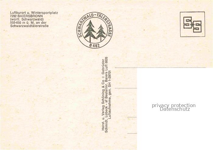 74136721 Baiersbronn Schwarzwald Panorama Luftkurort Wintersportplatz an der Schwarzwaldtaelerstrasse postalisch nicht gelaufen Fliegeraufnahme Erhaltung siehe scans [FriedD77] Fliegeraufnahme Frie Katcode 11110008237004