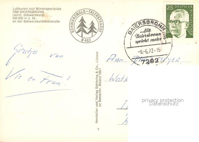 72942960 alte Postkarte Baiersbronn Schwarzwald Panorama Luftkurort Wintersportplatz Schwarzwaldtaelerstrasse postalisch gelaufen Erhaltung siehe scans [FriedD77] KatCode: 11110008237004