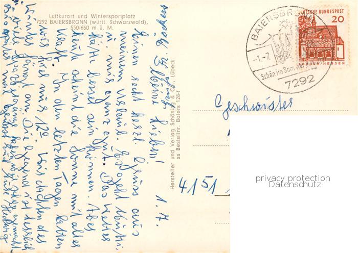 73787672 alte Postkarte Baiersbronn Schwarzwald Panorama Luftkurort Wintersportplatz postalisch gelaufen Erhaltung siehe scans [FriedD77] KatCode: 11110008237004