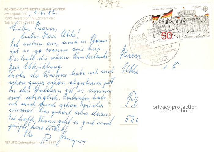 73870436 alte Postkarte Baiersbronn Schwarzwald Pension Restaurant Heyder Gastraeume Zimmer Panorama postalisch gelaufen Erhaltung siehe scans [WerneD78] KatCode: 11110008237004