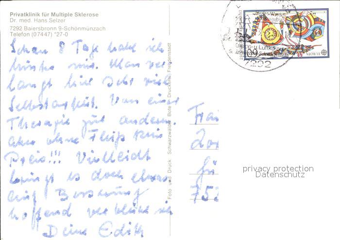 71974336 alte Postkarte Baiersbronn Schwarzwald Privatklinik fuer Multiple Sklerose postalisch gelaufen Erhaltung siehe scans KatCode: 11110008237004