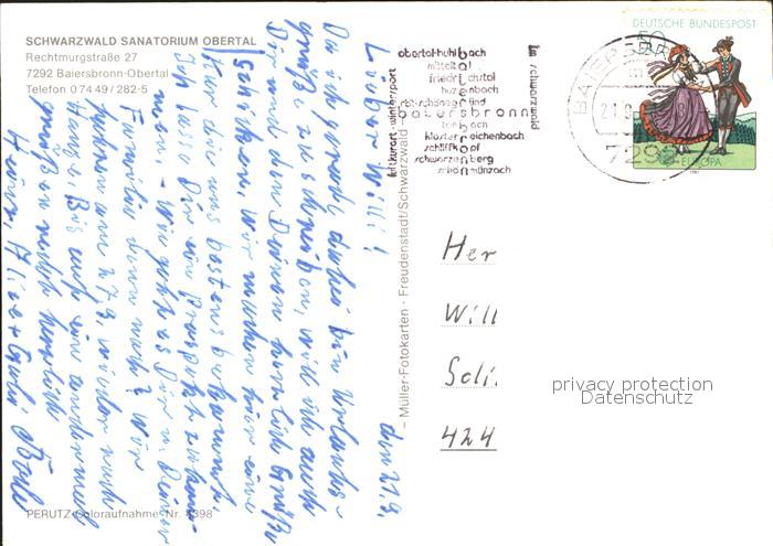 71931313 alte Postkarte Baiersbronn Schwarzwald Sanatorium postalisch gelaufen Erhaltung siehe scans KatCode: 11110008237004