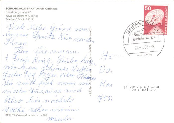 72202701 alte Postkarte Baiersbronn Schwarzwald Schwarzwald Sanatorium Obertal postalisch gelaufen Erhaltung siehe scans KatCode: 11110008237004