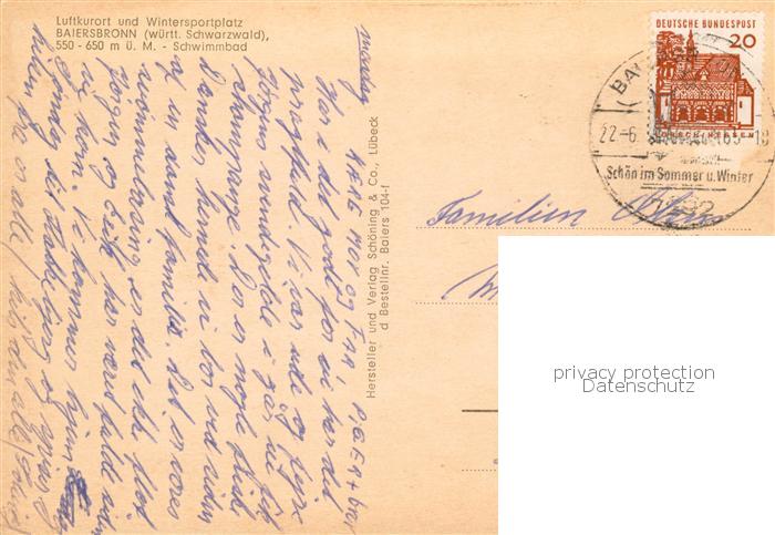 73866401 alte Postkarte Baiersbronn Schwarzwald Schwimmbad Luftkurort postalisch gelaufen Erhaltung siehe scans [FriedD77] KatCode: 11110008237004