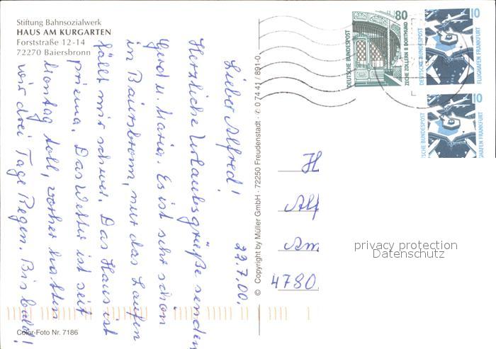 72221725 alte Postkarte Baiersbronn Schwarzwald Stiftung Bahnsozialwerk Haus am Kurgarten postalisch gelaufen Erhaltung siehe scans KatCode: 11110008237004