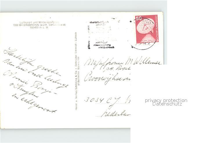 72259020 alte Postkarte Baiersbronn Schwarzwald Totalansicht postalisch gelaufen Erhaltung siehe scans KatCode: 11110008237004