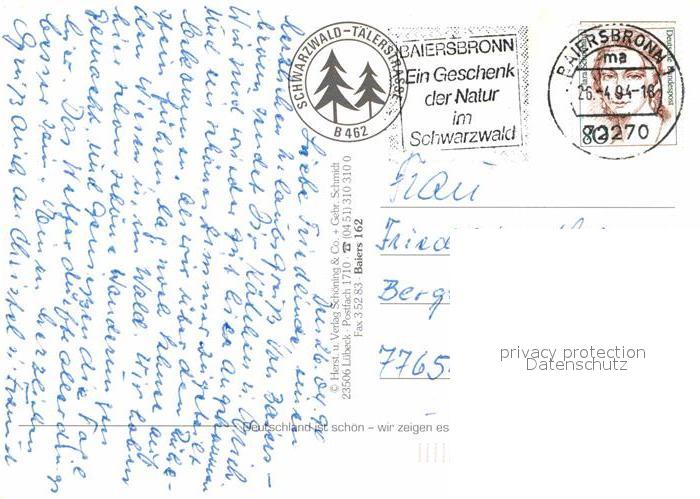 72723585 alte Postkarte Baiersbronn Schwarzwald und Umgebung Landschaftspanorama postalisch gelaufen Erhaltung siehe scans [FriedD77] KatCode: 11110008237004