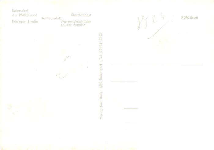 73888253 alte Postkarte Baiersdorf Mittelfranken Am RMD Kanal Erlanger Strasse Rathausplatz Storchennest Wasserschoepfraeder an der Pegnitz postalisch gelaufen Erhaltung siehe scans [WerneD78] KatCode: 11110009572115