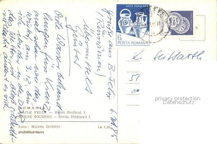 old postcard Baile Felix Hotel Nufarul postalisch gelaufen Erhaltung siehe scans