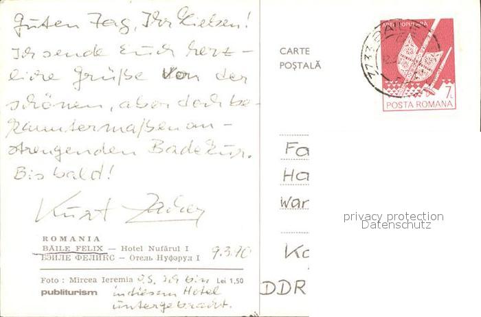 old postcard Baile Felix Hotel Nufarul postalisch gelaufen Erhaltung siehe scans