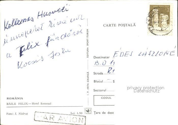 old postcard Baile Felix Hotel Somesul postalisch gelaufen Erhaltung siehe scans