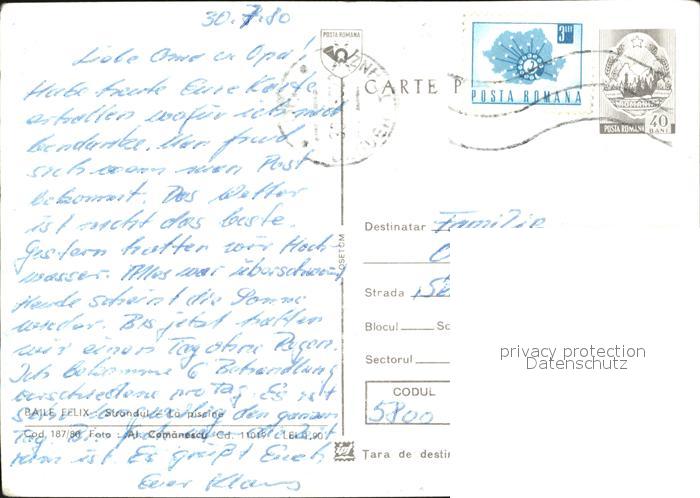 old postcard Baile Felix Strandul La piscine Schwimmbad postalisch gelaufen Erhaltung siehe scans