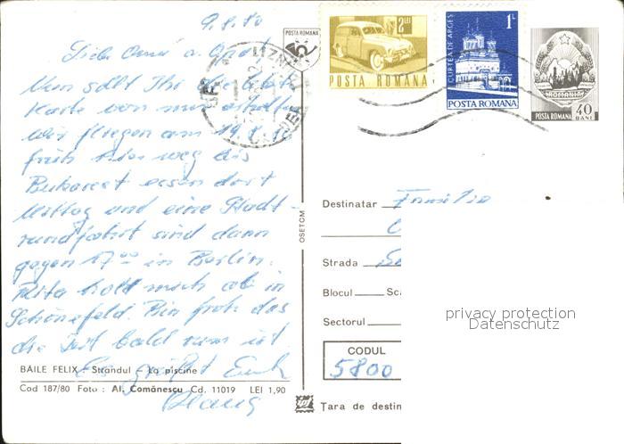 old postcard Baile Felix Strandul La Piscine Schwimmbad postalisch gelaufen Erhaltung siehe scans