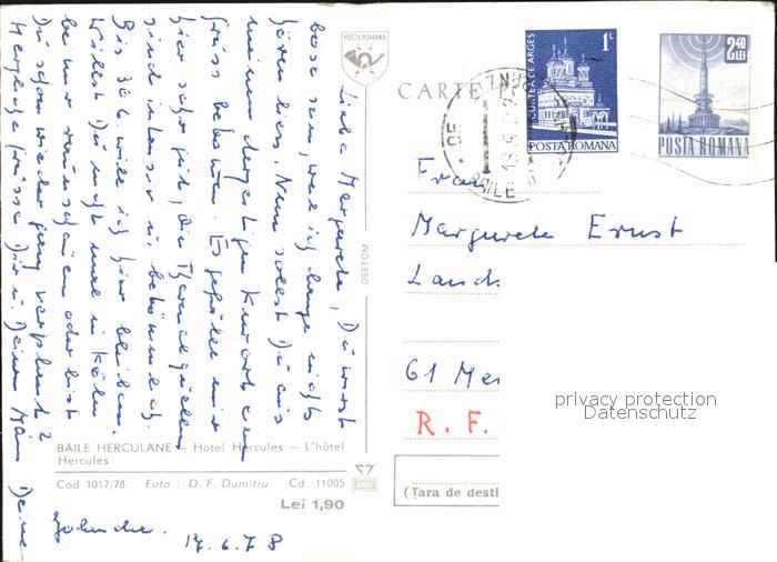 old postcard Baile Herculane Hotel Hercules postalisch gelaufen Erhaltung siehe scans