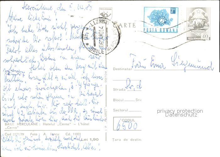old postcard Baile Herculane Hotelul Cerna postalisch gelaufen Erhaltung siehe scans