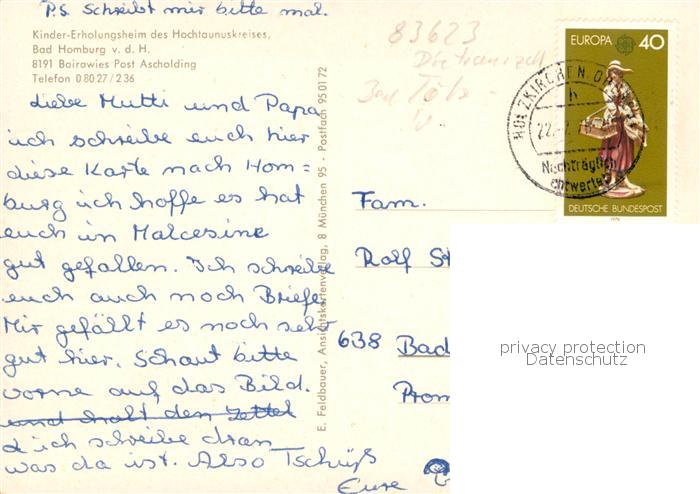 73762741 alte Postkarte Bairawies Kinder Erholungsheim Bad Homburg Tischtennis Zimmer Garten postalisch gelaufen Erhaltung siehe scans [FriedD77] KatCode: 11110009173118