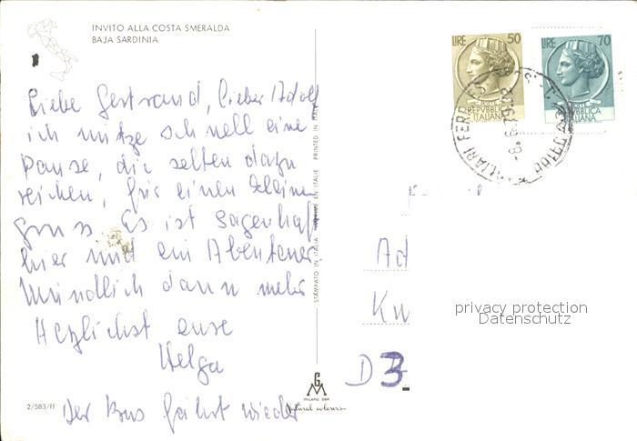 old postcard Baja Sardinia Arzachena postalisch gelaufen Erhaltung siehe scans