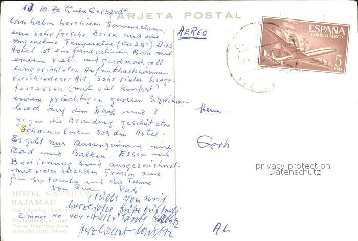 old postcard Bajamar Tenerife Hotel Nautilus postalisch gelaufen Erhaltung siehe scans