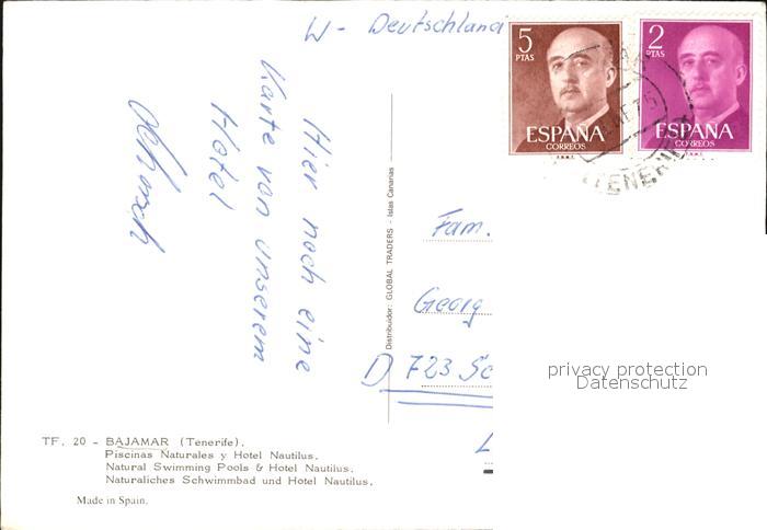 old postcard Bajamar Tenerife Hotel Nautilus postalisch gelaufen Erhaltung siehe scans [LiesaD40]